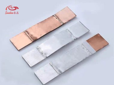 No plating flexible copper foil laminated connector is usually stacked with 0.5mm aluminum foil to form the same section as the busbar, and the two ends are welded to the terminal board.